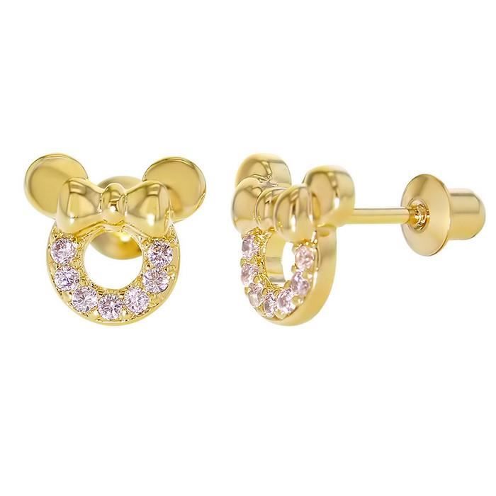 Minnie Boucle d' oreilles à Vis Bébé Enfant Or Jaune gf 18 CT Cristal Rose Achat / Vente