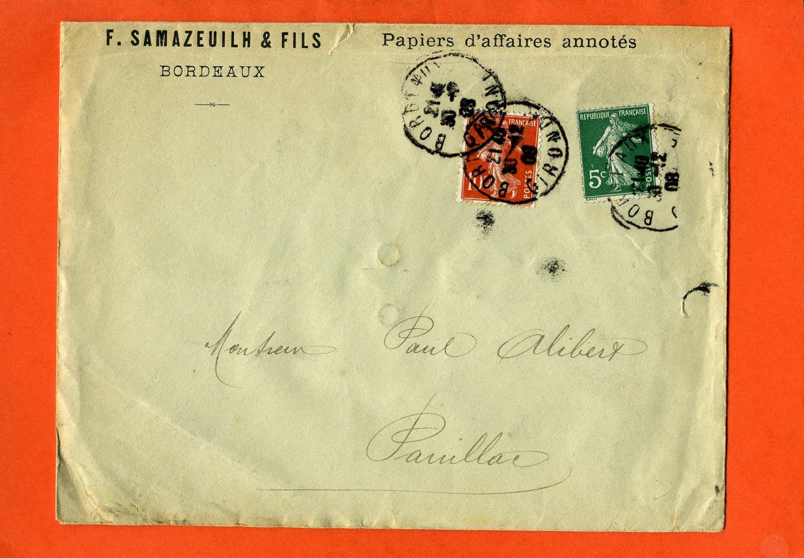 JCV PHILATELIE PAPIER D'AFFAIRE ANNOTE
