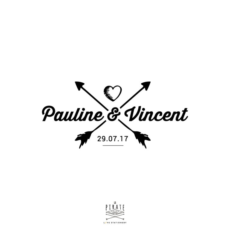 Tampon Mariage Flèches Croisées et Coeur Dessiné à la main